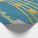 Teal, blue green background with faux gold music notes. With the text: Happy Birthday! (x2)
