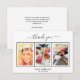 An elegant, simple summer 21st birthday (or andy age) Thank You card personalized with your own photo. Add 3 of Your birthday photos, vertical size, a date, name, and the thank you note. A chic white background with black text and a white frame. The text: Thank you on the front and your names on the back are written with a stylish hand lettered script with swashes.