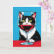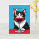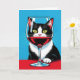 Birthday Tuxedo Cat Looking Through a Wine Glass Card