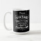 Vintage Limited Edition Aged To Perfection personalized birth year coffee mug. This retro whiskey label-styled design is the perfect gift for a birthday. The editable text allows you to personalize it with a name and birth year.