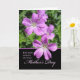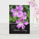 Birthday Wishes on Mother's Day, paper greeting card. Card has an image of Cranesbill geraniums in shades of violet and lavender colors. Botanical, floral themed greeting card. Art, image, and verse copyright © Shoaff Ballanger Studios, 2021.