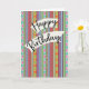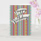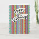 This is a fun Birthday card for anyone that has colorful solid and pattern stripes. The text says ‘Happy Birthday’ over white curved banners.