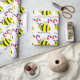Fun birthday wrapping paper for any age. Cute smiling yellow bumble bee with black stripes fluttering its wings. Colorful flying balloons in red, blue, orange, green, yellow. With the wording, Happy Birthday written in black text bottom of bee. Original Graphic Artwork Design by TamiraZDesigns.