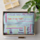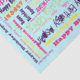 10x15 Tissue Wrap, Happy Birthday Template-Mixed text fonts with mixed colors cover the entire tissue paper with a personalized name from you. It's set up to read: Happy Birthday (pick a name), all over the paper. Currently the name says ASPEN. It's a five letter name. By choosing a name with more or less letters you may have to adjust the layout by deleting or adding more text areas. The text colors include: Pink, greens; yellow, orange and purples. The background is a very soft blue color.