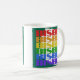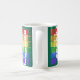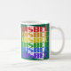 The coffee mug design saying "Bisbee" is colored dark turquoise but it has white, red, orange, yellow, green, blue and purple ink in it. It makes it ideal for either coffee or tea in the mornings. It is microwave and dishwasher safe.