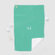 Golf towel with Biscay green solid color background and white font .Simple and trendy design by Alma Wad .Personalize it with your monogram now ..