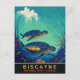 Biscayne national park postcard, Florida. Turtles swimming underwater. Travel postcard.