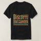 This eye-catching t-shirt design features "Biscotti Buccaneer" in a bold, multicolored outline. The center of the shirt showcases a pirate ship sailing on a sea of biscotti crumbs, adding a playful touch to the design