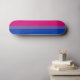 The deep pink or rose stripe at the top of the flag represents the possibility of same gender attraction; the royal blue stripe at the bottom of the flag represents the possibility of different gender attraction and the stripes overlap in the central fifth of the flag to form a deep shade of lavender or purple, which represents the possibility of attraction anywhere along the entire gender spectrum.