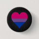 Classic Round Button with heart design in colors of bisexuality; pink, purple and blue stripes pride flag, rainbow love design