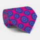 Neck-tie with a seamless modern geometric flower pattern in the colors of the bisexuality pride flag; a pink, purple, and blue bi pride design on a pink background