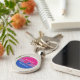 Metal keychain with the bisexuality pride flag with little hearts in the center of the design. Pink, purple, and blue flag of the bi pride movement; with an editable text field for your name or message