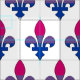 Fabric with fleur-de-lis (fleur-de-lys or lily flower) symbol with rainbow stripes of pink, yellow and blue from pansexuality flag; pan pride design on white background