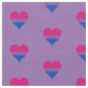 Fabric with hearts design in colors of bisexuality; pink, purple and blue stripes bi pride flag, rainbow love bi pride design on purple background