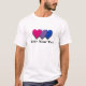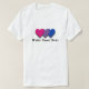 Customizable Basic T-shirt with hearts design in colors of bisexuality; pink, purple and blue stripes pride flag, rainbow love design, with customizable text