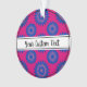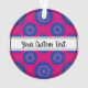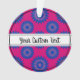 Christmas ornament with a seamless modern geometric flower pattern in the colors of the bisexuality pride flag - a pink, purple, and blue bi pride design on a pink background; with an editable text field for your name or message; a great way to decorate your Christmas tree :D