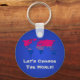 Button Keychain with bisexuality rainbow stripes map of world, bisexuality pride design, Let's Change the World template text, by pinkbrickroad