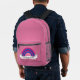 Backpack with bisexuality rainbow stripes of pink, purple and blue; bi pride lgbtqiap+ flag design, "These Are My Colors" template text, by pinkbrickroad