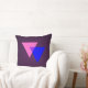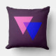 Throw pillow with pink and blue triangles bisexuality symbol, on purple background