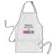 The apron is of very good quality. I used it while icing cookies. The dark colored icing washed off of the apron very well! The neck strap is sturdy and easy to resize on the adult size apron. The print was clear and well defined. I am glad I was able to personalize with name.