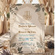 Celebrate your union with a modern Nikkah design featuring earth tones and botanical details. A perfect blend of tradition and boho-chic elegance.This design features a watercolor illustration of a ceremonial archway composed of dried pampas grass, beige roses, and sage green foliage. A subtle geometric lattice pattern in sand tones fills the background within the arch, framing the text. The header displays "Bismillah" in traditional Arabic calligraphy, simulated in a printed bronze-gold color. The couple's names are presented in a bold serif typeface in slate blue, contrasting against the cream background, while secondary details utilize a classic script. This is a flat printed image with a faux gold foil effect, not actual raised material.