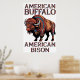 An illustration of a bison wearing a headdress made of colorful feathers.