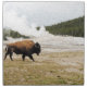 A bison saunters past Old Faithful geyser in Yellowstone National Park in this digital painting, based on an original photograph by Jayne Wilson.
