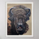 Linda Baysinger Peck's acrylic painting of a buffalo, or bison cow, eating, with tan background and off white border.Image © Linda Baysinger Peck All Rights Reserved