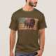 My 11 yo wore adult XL (5’7” 165#). The 8yo is small framed. She wore adult small and tied it in the back. Grandma wore adult large with long sleeve shirt underneath. Tall girl adult medium. Dark haired male adult large. Good quality dark Heather gray, Gildan brand shirt. -it was next up from basic choice and cost about $20 per shirt. Not too thick or thin. Washed and dried well, no major shrinkage. Not see-through. Can wear a bra under it fine. Screen print is just as shown and well done, front and back.