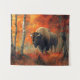 Bison in the Autumn Woods Artwork Tapestry