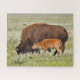 Jigsaw Puzzle featuring a mama bison and her calf grazing on the prairie. Photo from Grand Tetons National Park by the designer ©sjasis