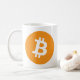 This classic Bitcoin logo coffee cup is perfect for the Bitcoin maxi or just an enthusiast of crypto. No matter if you are right handed or left handed the Bitcoin logo will face everyone showing them your passion for Bitcoin.