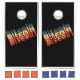 Spread the word about Bitcoin with this cool cornhole game. Great for college parties, family barbecues, and socially distanced outdoor fun. Cornhole is a lawn game in which players take turns throwing 16 ounce bags of corn kernels at a raised platform with a hole in the far end. A bag in the hole scores 3 points, while one on the board scores 1 point.