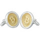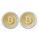 This design features an interpretation of a Bitcoin, a popular cryptocurrency.