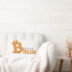 Bitcoin Cryptocurrency throw pillow with golden Bitcoin text and Bitcoin logo pattern on backside. Deco pillow for your home for all crypto nerds and fans of Bitcoin in the crypto world. Change size and colors for your personalized throw pillow. In crypto we trust!
