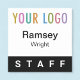 Personalize our professional square staff badge with your logo, staff name, or other custom text. Available with a safety pin or a magnetic fastener (do not use with pacemakers). The default backing is the pin back so if you prefer the magnetic, be sure to make the selection before checkout. Designed in black and other colors (all colors are customizable). The dimensions are 2 inch x 2 inch. No minimum order quantity and no setup fee.