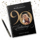 Black 90th Birthday Gold Elegant Script Guestbook notebook. And elegantly designed special birthday celebration, featuring a custom photo of birthday person and script calligraphy with vintage flourish elements. Add photo inserts to this binder to make it a wonderful album to store all your photos and memories of the celebration! Need help? Simply contact me!
