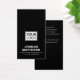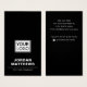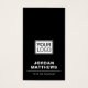Black or custom color, modern, professional, vertical business card design with template fields for name, company name/title, logo (photo or other graphic) and contact information including social media icons. Change background color, move and resize elements with the customization tool.