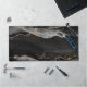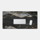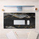 Modern, stylish professional desk mat featuring black agate geode, marble and faux gold glitter accents personalized with script monogram initials and name (shown in an editable trendy calligraphy script font). Choose from other font styles in EDIT. ASSISTANCE: For help with design modification or personalization, color change or you would like coordinating items, contact the designer BEFORE ORDERING via the Zazzle Chat MESSAGE tab or email makeitaboutyoustore@gmail.com.