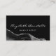 This elegant modern business card features a black watercolor agate design trimmed with sparkly silver faux glitter on a black background. Personalize it with your name in white handwriting-style script and business information in white sans serif font. The black agate image is repeated on the reverse.