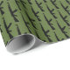 Wrapping paper with a military weapon pattern of black AK-47 assault rifle guns on an olive green background. Customizable.