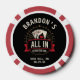 Raise the stakes at bachelor party poker nights with these black "All In Before the Ring" custom poker chips featuring a bold playing card graphic, groom's name, and event details on the front. The sleek black background with gold accents creates a high‑stakes Vegas casino atmosphere perfect for house tournaments, bar crawls, or Airbnb game nights. Personalize the city, state, and date to create matching chip sets for the entire bachelor crew and elevate every hand from casual shuffle to championship showdown.
