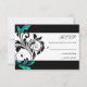 Black and Aqua Floral Swirl Wedding RSVP Card