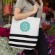 Black and Aqua Monogram Stripe Tote Bag
