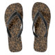 Elegantly designed black and bronze oils 2675 flip flops for him and her. She has the added bonus of buying matching leggings.