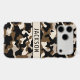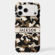 Customize this black and brown camouflage iPhone 17 pro max case with your name in a trendy modern CAP font in black on cream. It's masculine and perfect for your favorite military, hunting, country or outdoorsman!