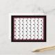 A classy design featuring black music notes on a white background. Accented by a border of burgundy and black.