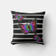 Colorful pink red blue green black and white striped modern throw pillow.