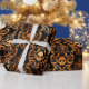 Black and Copper Skulls Halloween Damask pattern Wrapping Paper