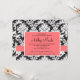 Black and Coral Damask Invitation